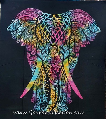 Olifant Multi Zwart Print Mode Muur Opknoping Wandtapijten Katoenen Stof Laken Enkele Maat Voor Huisdecoratie GC-TP-176-G